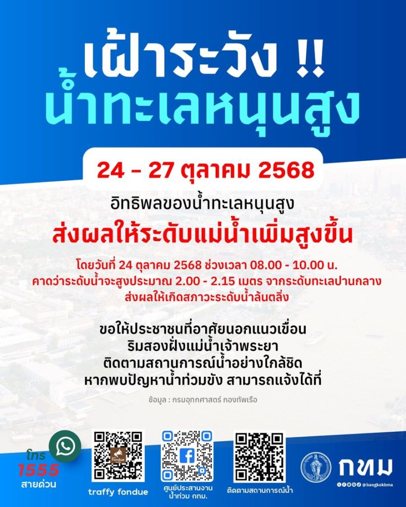 กทม. เฝ้าระวังสถานการณ์น้ำรุกเมือง กางแผนรับมือน้ำเหนือ-น้ำทะเลหนุน-ฝนตกหนัก