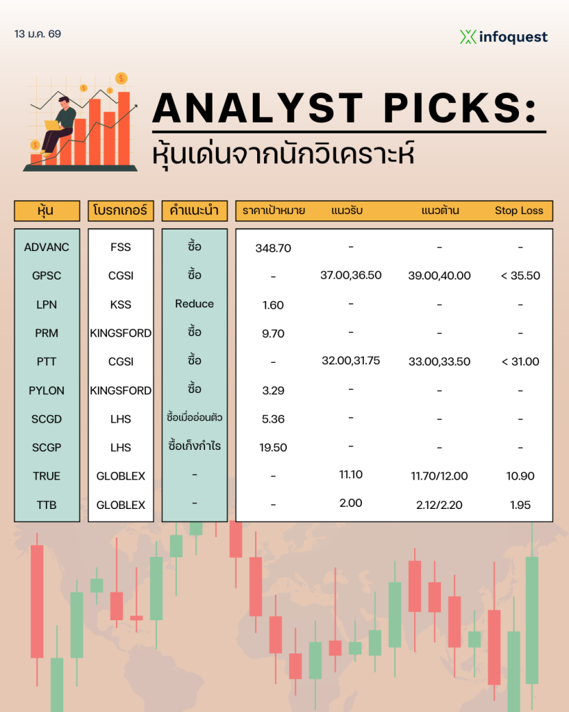 ANALYST PICKS: หุ้นเด่นจากนักวิเคราะห์ วันที่ 13 มกราคม 2569
