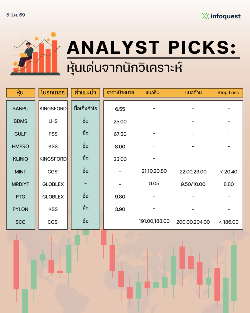 ANALYST PICKS: หุ้นเด่นจากนักวิเคราะห์ วันที่ 5 มีนาคม 2569