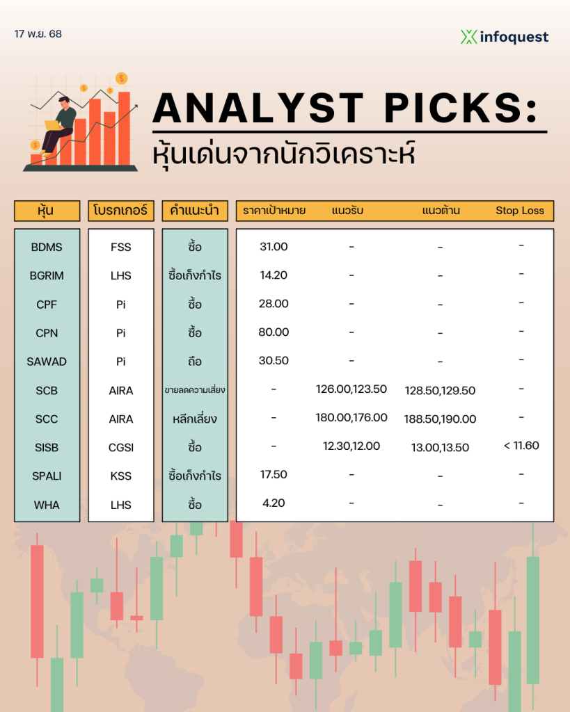 ANALYST PICKS: หุ้นเด่นจากนักวิเคราะห์ วันที่ 17 พฤศจิกายน 2568