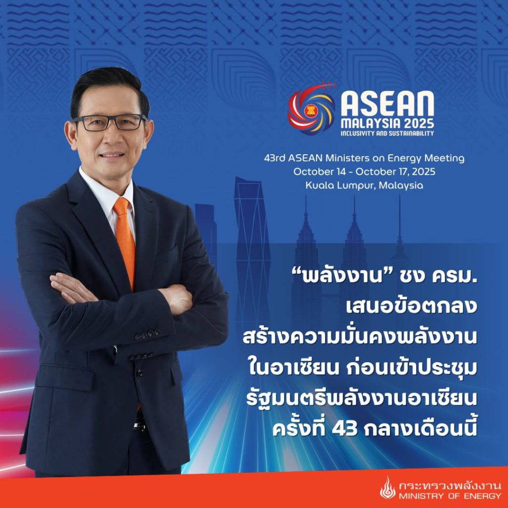 รมว.พลังงาน เตรียมลงนามต่ออายุโครงข่ายสายส่งไฟฟ้า-ความมั่นคงทางปิโตรเลียมของอาเซียน ในเวที AMEM