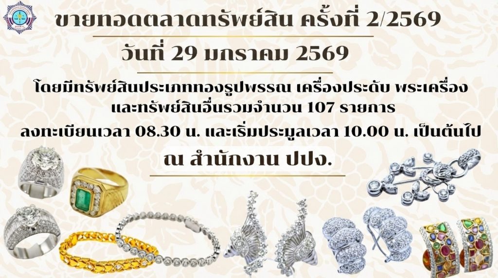จัดชุดใหญ่! ปปง.เปิดประมูลทอง-อัญมณี-พระเครื่อง 21 มี.ค.นี้