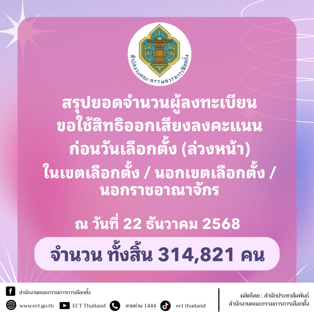 เลือกตั้ง’69: กกต.เผยยอดลงทะเบียนขอใช้สิทธิเลือกตั้งล่วงหน้า 3 วัน 3 แสนคน