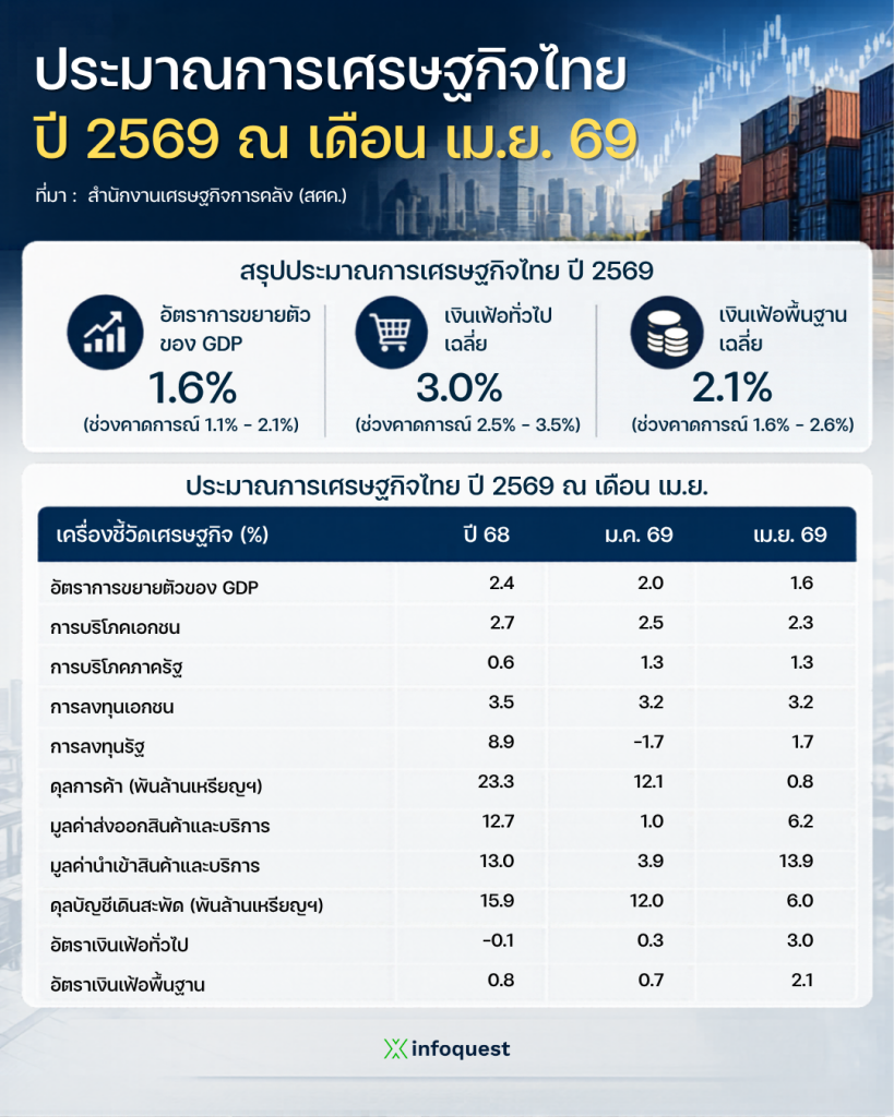 ตารางประมาณการเศรษฐกิจไทย ปี 2569 ณ เดือน เม.ย. 69