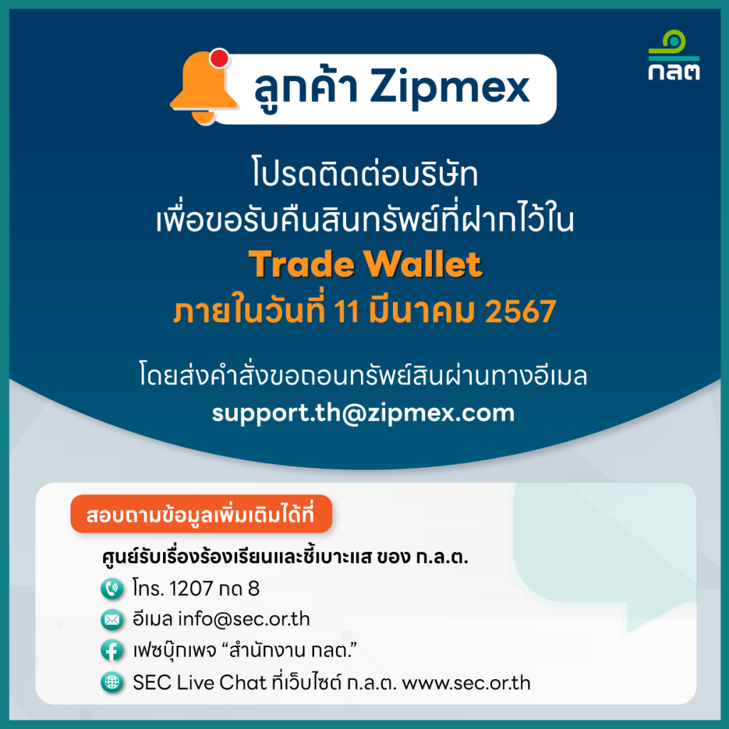 บอร์ด ก.ล.ต.ลงมติชง รมว.คลัง ยึดไลเซ่นส์ธุรกิจสินทรัพย์ดิจิทัลจาก Zipmex