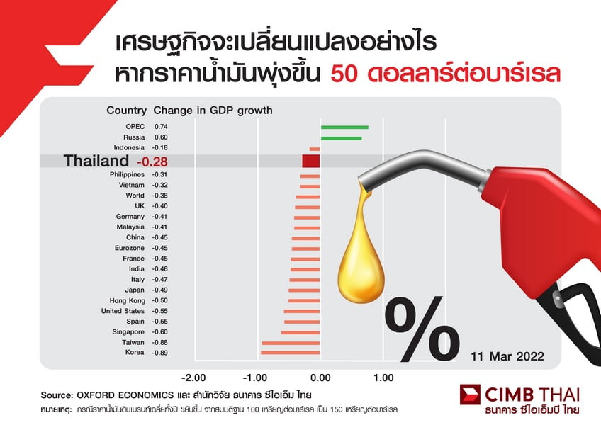 CIMBT คาดราคาน้ำมันพีคสุด Q2/65 ดันเงินเฟ้อพุ่ง กด ศก.ไทยชะลอ 0.3% จากฐาน