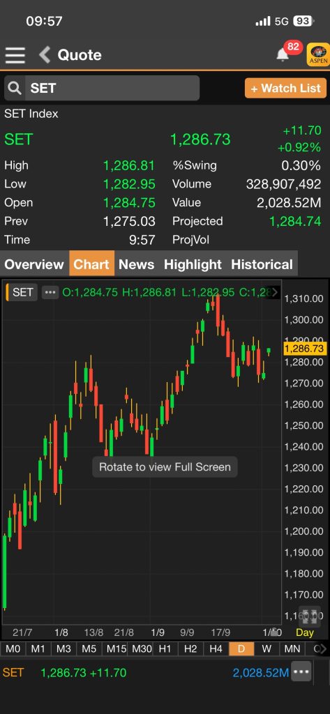 หุ้นไทยปิดเช้าบวก 15.63 จุด เด้งตตามตลาดหุ้นเอเชียตอบรับตัวเลขจ้างงานสหรัฐต่ำคาด-บอนด์ยีลด์ย่อ