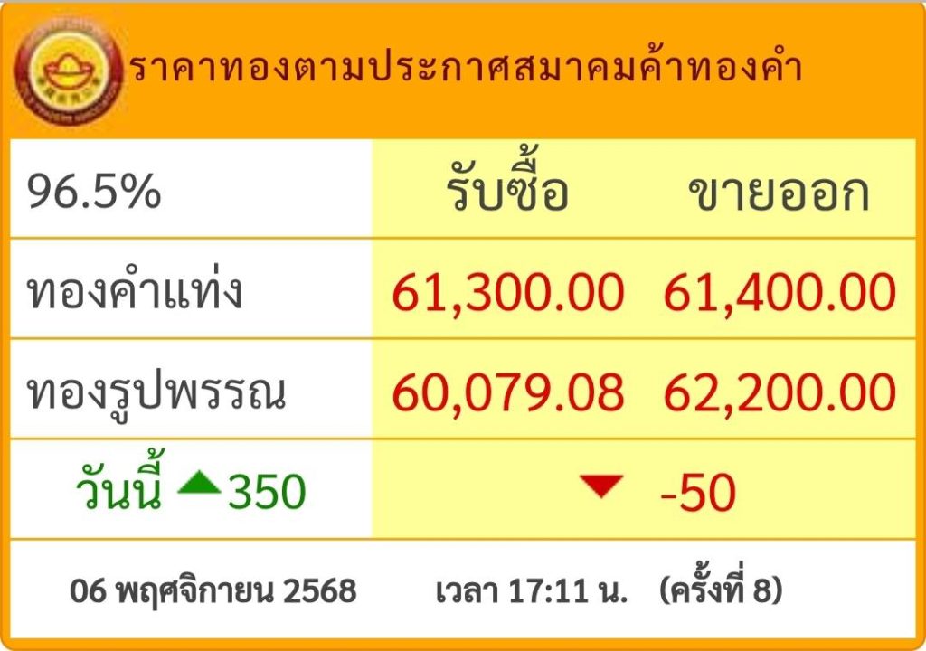 ทองไปลิ่ว!! รูปพรรณยืนเหนือ 62,000 หลังเช้านี้ราคาพุ่งอีก 500 บาท