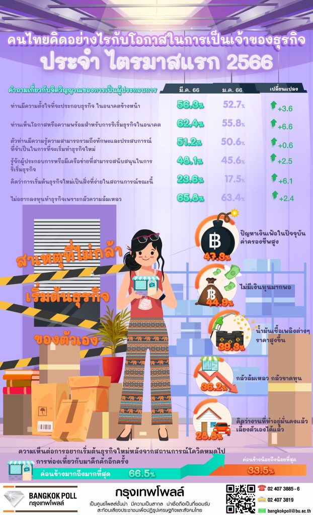 โพลล์ชี้โอกาสคนเริ่มทำธุรกิจปีนี้น้อยลงกลัวค่าครองชีพสูง-ของแพง
