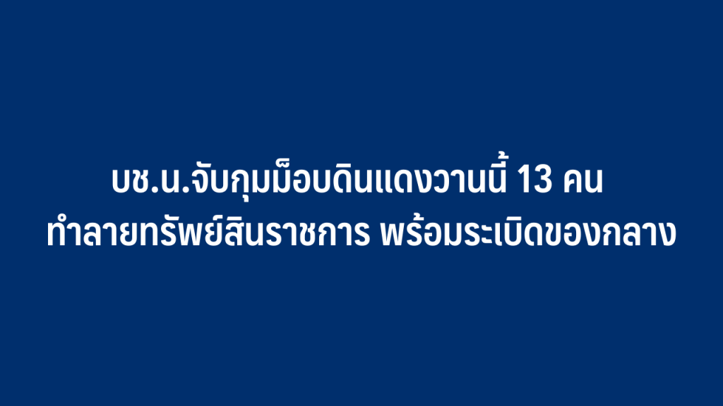 บช.น.จับกุมม็อบดินแดงวานนี้ 13 คน ทำลายทรัพย์สินราชการ พร้อมระเบิดของกลาง