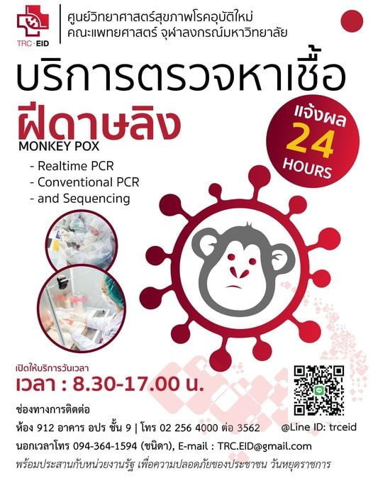 จุฬาฯ เปิดให้บริการตรวจหาเชื้อฝีดาษลิง รู้ผลใน 24 ชั่วโมง