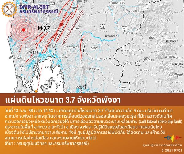 เกิดแผ่นดินไหวขนาด 3.7 จ.พังงา รับรู้แรงสั่นสะเทือนใน 3 อำเภอ
