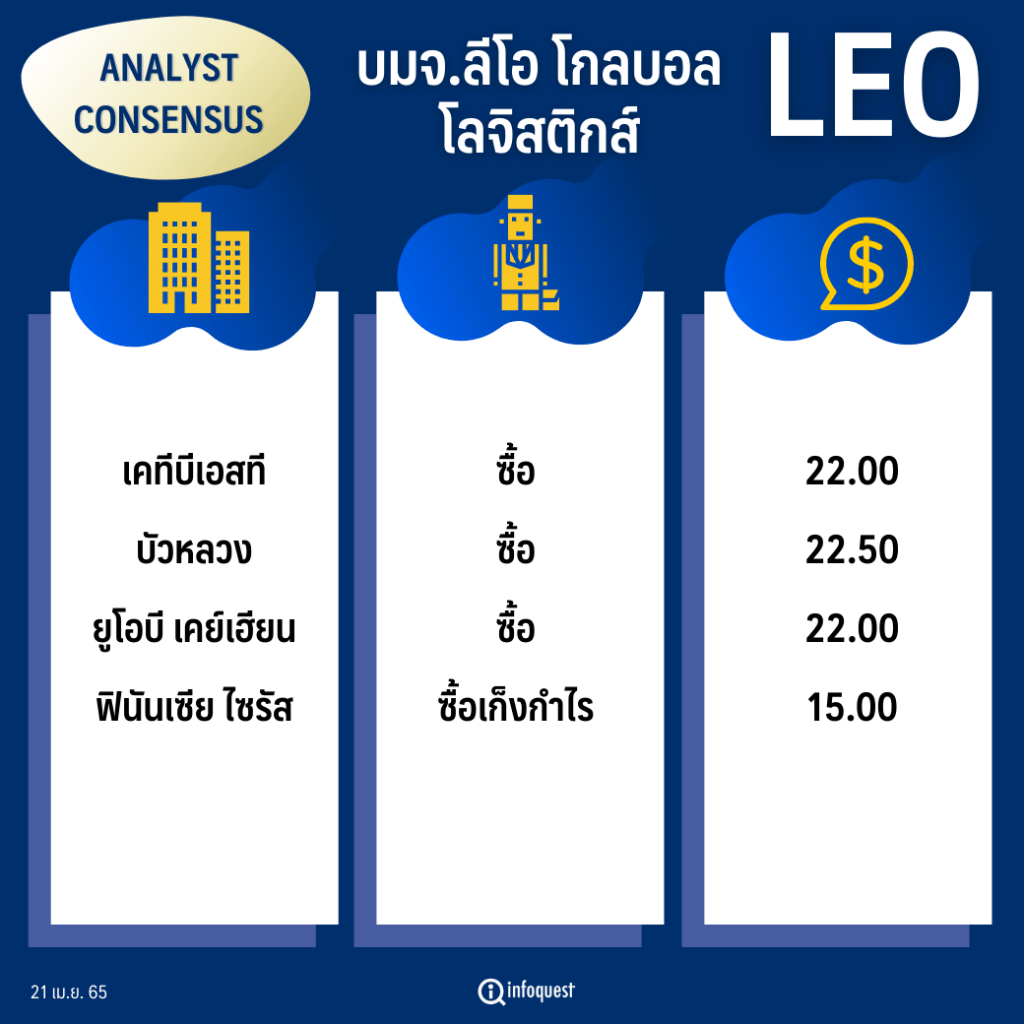 CONSENSUS: โบรกเชียร์ “ซื้อ” LEO คาด H1/65 นิวไฮต่อเนื่องตามปริมาณ-ค่าขนส่งทรงตัวสูง