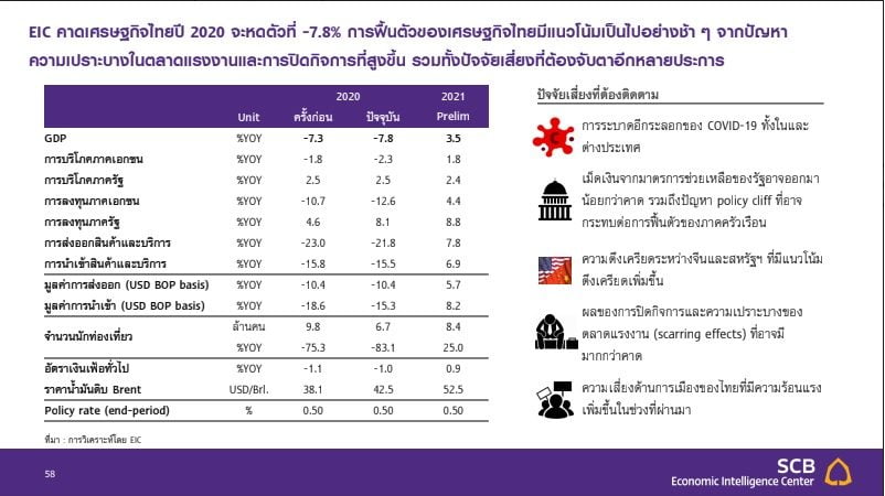 SCB EIC หั่นคาดการณ์ GDP ปีนี้เหลือโต 0.7% ก่อนฟื้นโต 3.4% ในปี 65