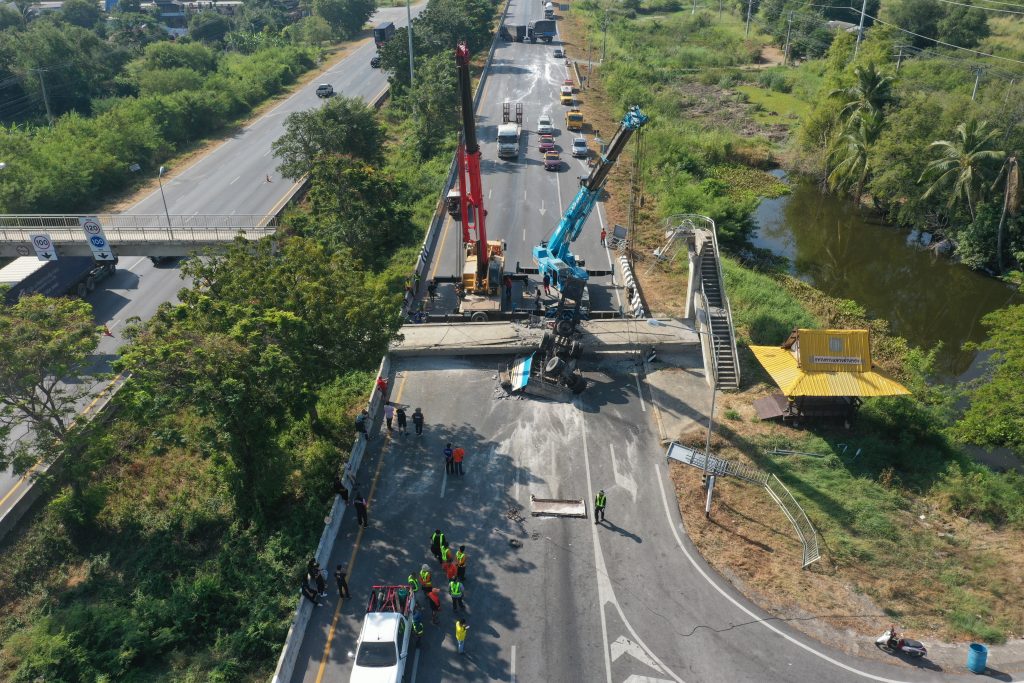 กรมทางหลวง เร่งเคลียร์พื้นที่คานสะพานลอยร่วง บ.นาไทร จันทบุรี คาดเปิดจราจรวันนี้