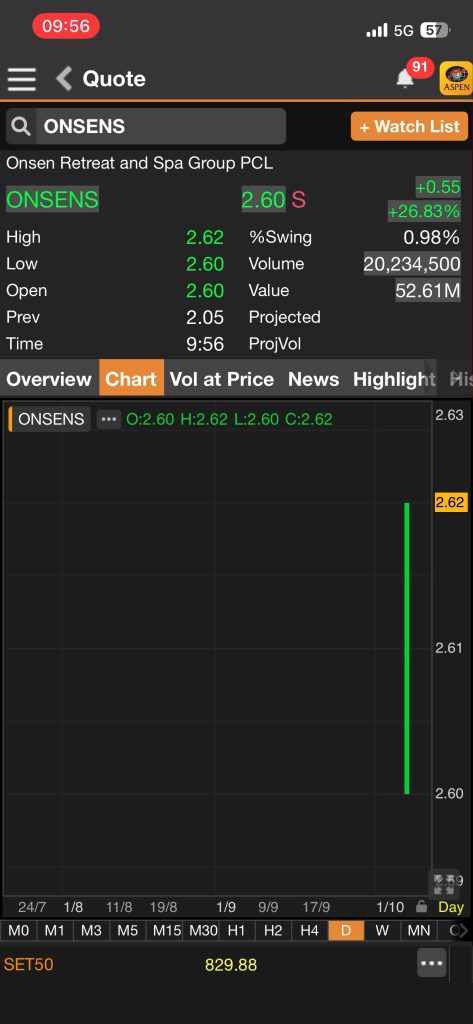 ONSENS เปิดเทรดวันแรก 2.60 บาท เหนือจอง 26.83% จากราคา IPO ที่ 2.05 บาท