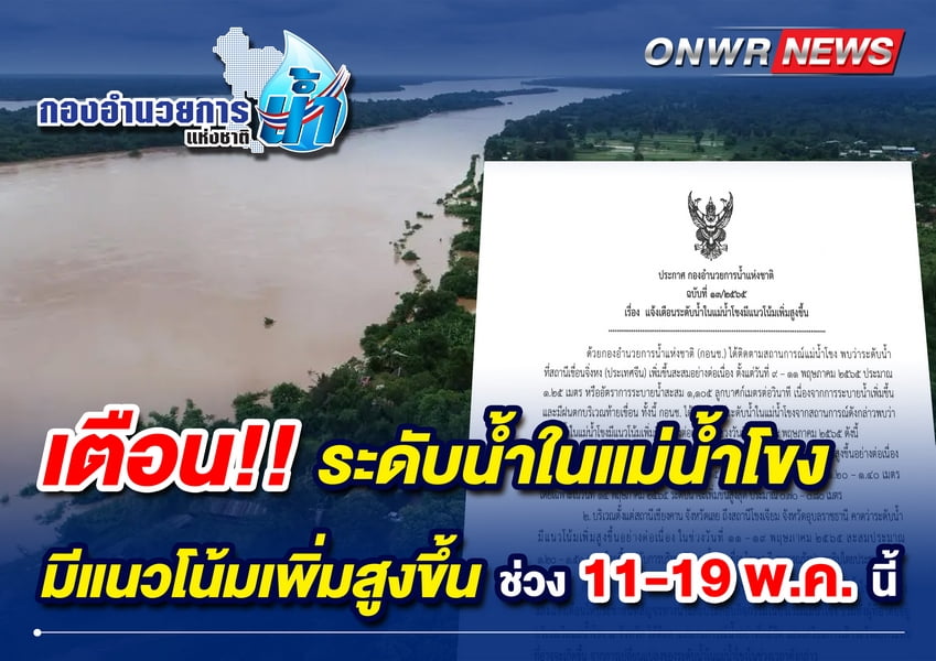 กอนช. เตือน 7 จ.อีสานระวังระดับน้ำโขงเพิ่มขึ้นฉับพลัน ช่วง 25-26 พ.ค.