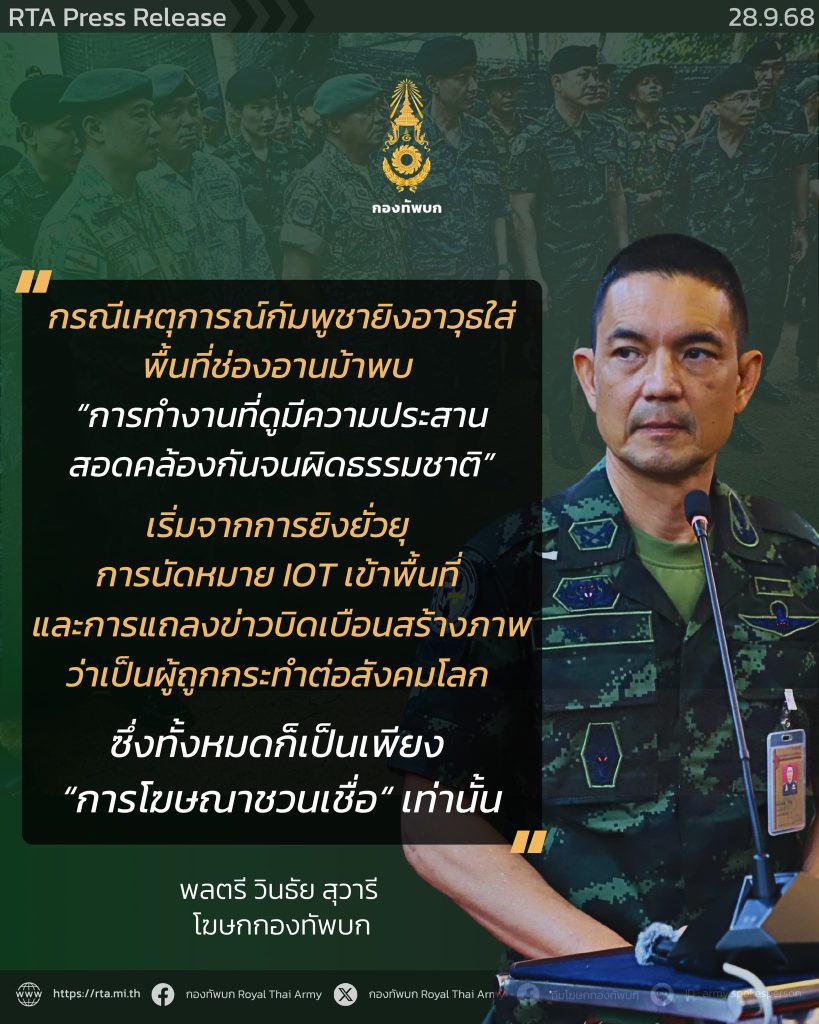 ไทย-กัมพูชา: โฆษก ทบ.โต้กัมพูชาบิดเบือนปมสลายม็อบบ้านหนองหญ้าแก้ว ยันยึดตามหลักสากลทุกขั้นตอน