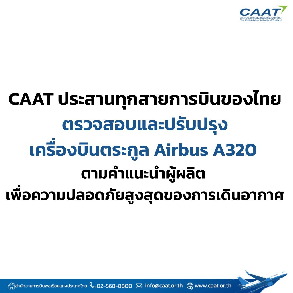 CAAT เร่งสายการบินตรวจสอบ-ปรับปรุงซอฟต์แวร์ Airbus A320 ตามคำเตือนผู้ผลิต ป้องกันผลกระทบจากรังสีสุริยะ
