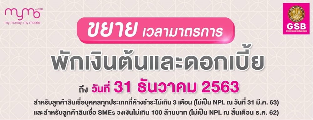ออมสินขยายเวลามาตรการพักชำระหนี้อีก 3 เดือน สิ้นสุด 31 ธ.ค.63